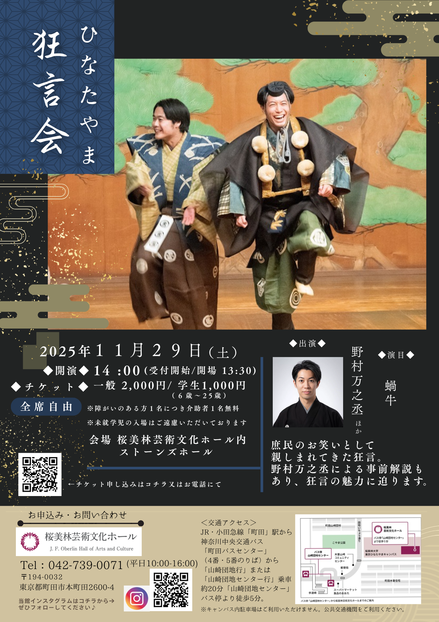 2025/7/29 | 先日の「ファミリー狂言会・夏」「夏公演」では多くの皆様にご来場いただきましてありがとうございました。次回は10月18(土)に「ふらっと狂言会♭6」「万蔵・由祠還暦記念 黒川能出演特別公演」、チケット一般発売は8月6日(水)です。 |