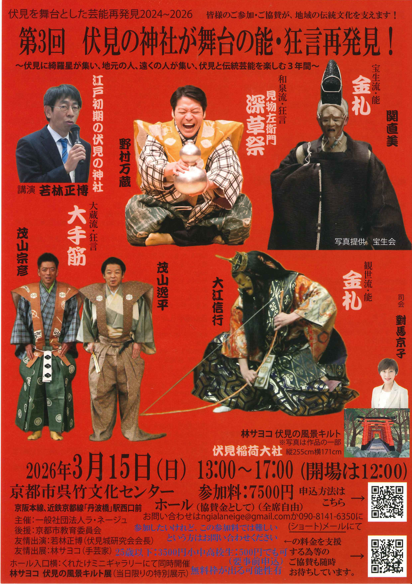 万蔵が狂言「見物左衛門 深草祭」にて出演します。他、能や講演もあります。