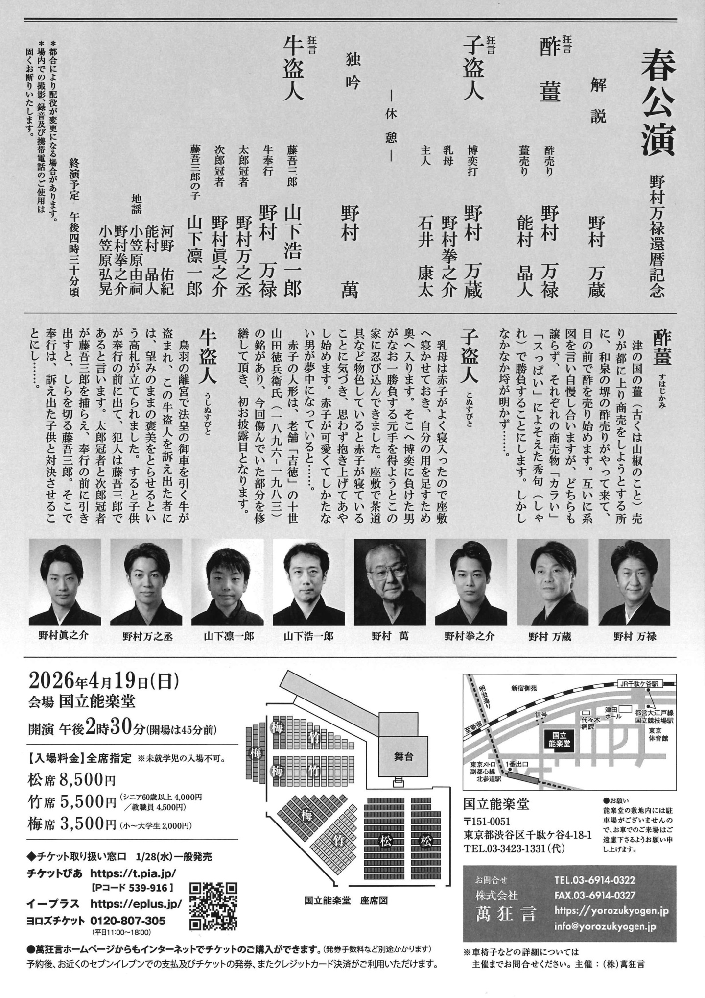 万蔵家一門が出演する定例の春公演。野村万禄還暦記念として開催。